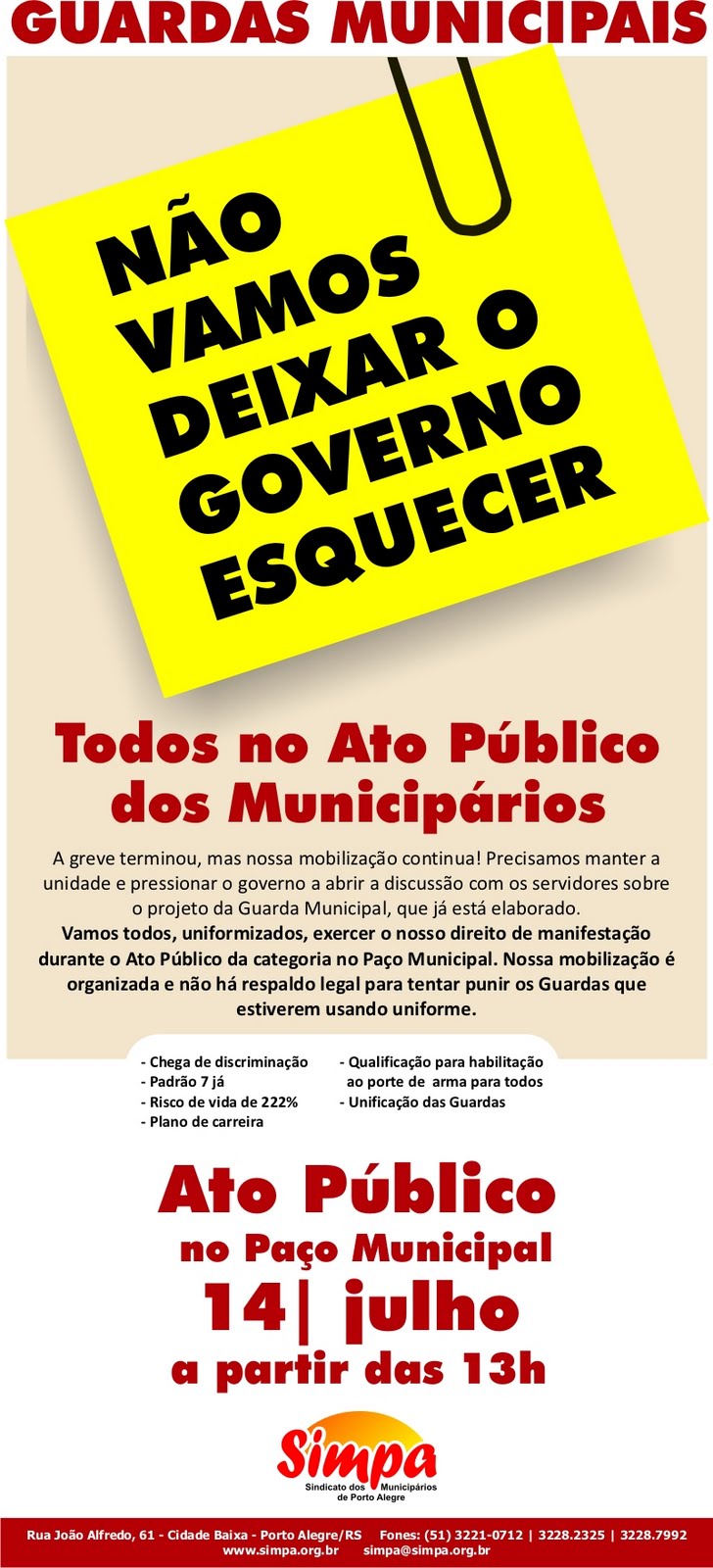 ATENÇÃO São os guardas municipais que protegem os funcionários, os bens, serviços e instalações municipais. Condições dignas de trabalho e Faixa 07, são um investimento na segurança da cidade, principalmente nos Postos de Saúde, Comunidade Escolar, Praças e Parques.